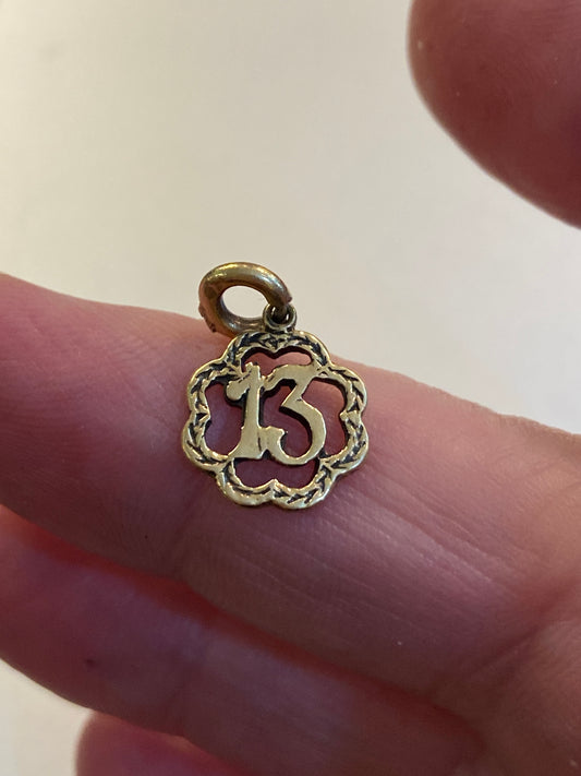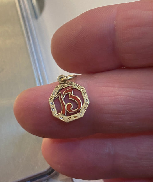 14ct 585 vintage enamel lucky '13' charm / pendant enamel