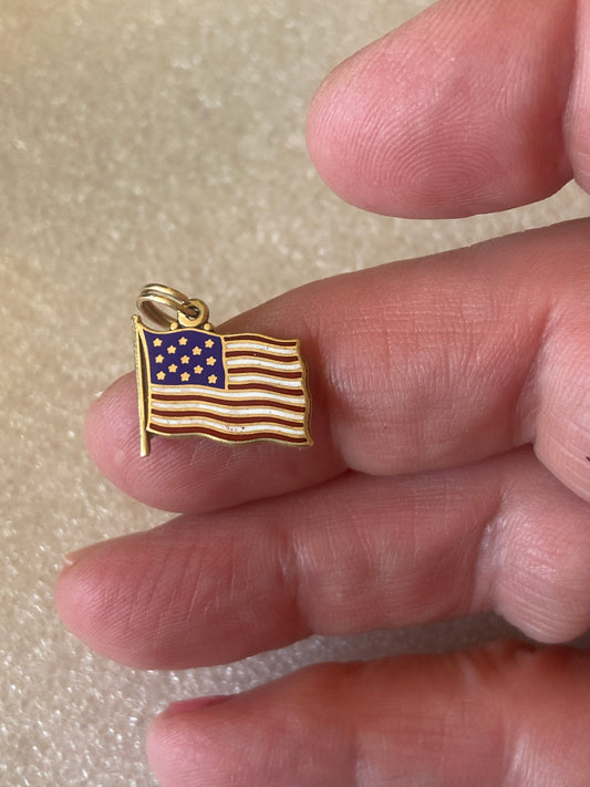 14ct American flag charm / pendant. enamelled. 1.7g