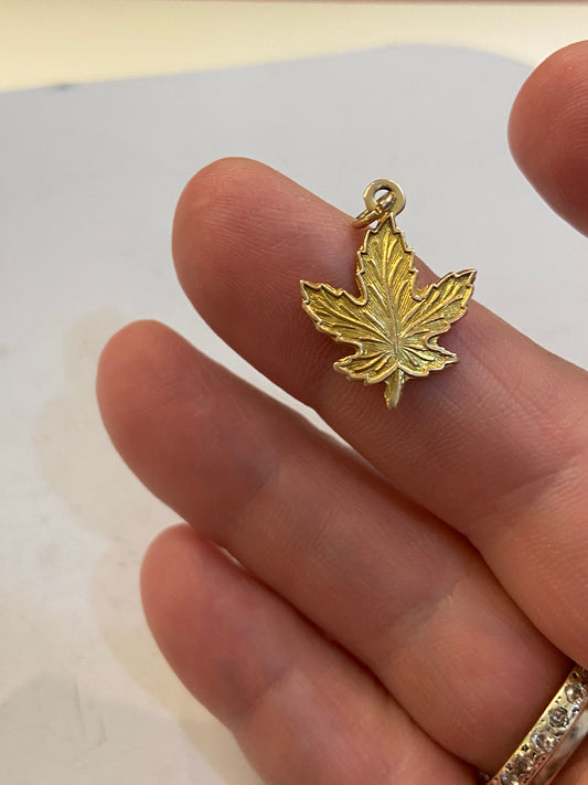 10ct vintage maple leaf charm, canadian maple leaf charm