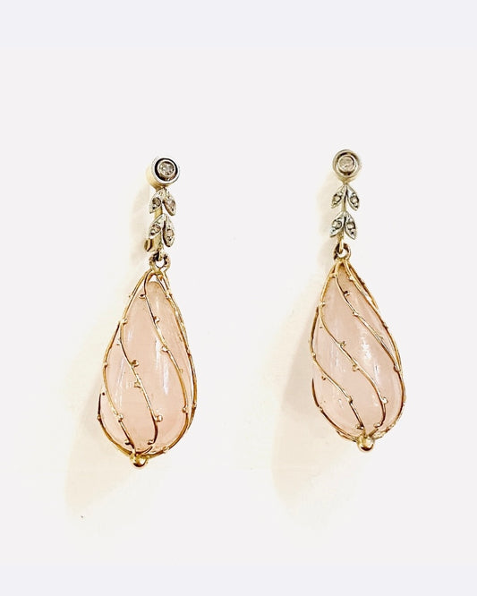 14ct 585 pre loved rose quartz drop earrings set in 14ct gold