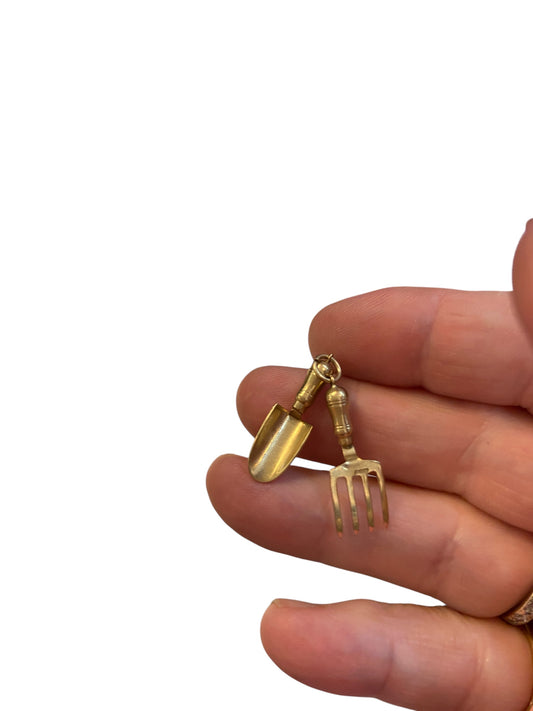 9ct vintage gardening tooks trawl and fork by WHC circa 1970