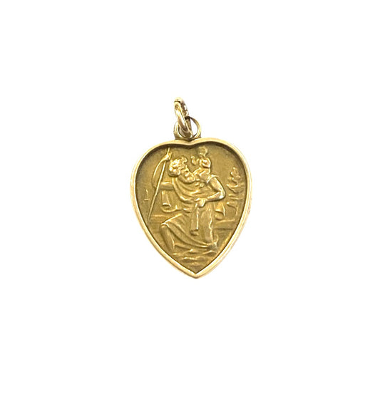 9CT VINTAGE ST CHRISTOPHER CHARM /PENDANT HEART SHAPE CIRCA 1962 1.4G