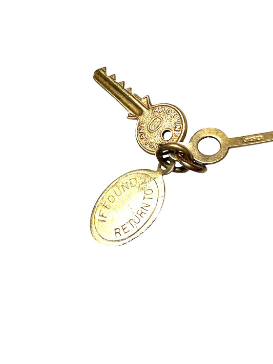 9ct vintage keys charm, with return if found tag . circa 1960s