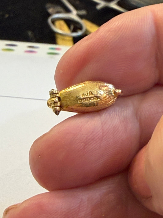 9ct vintage lucky bean charm circa 1957 London. Hollow