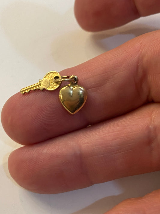 9ct vintage heart and key, very small