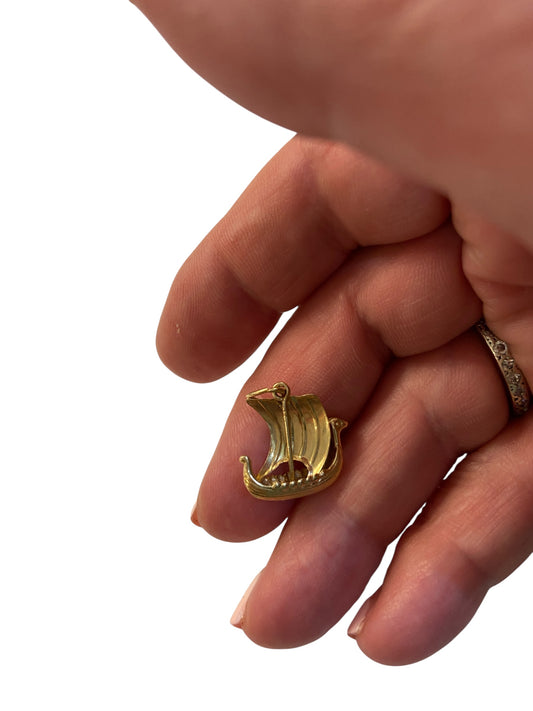 9ct vintage viking ship charm. yellow gold
