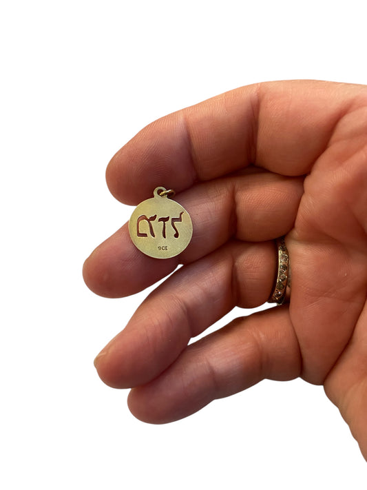 9ct vintage charm with the Hebrew word Mazal meaning luck / fortune.