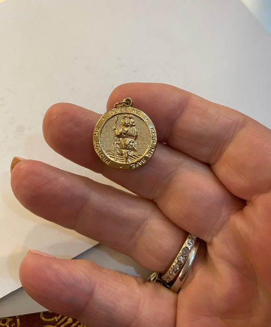 9ct pre owned st Christopher charm / pendant with a guardian angel on the reverse. Hollow