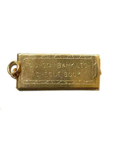 9ct vintage opening cheque book charm, with miniature cheques inside circa 1968