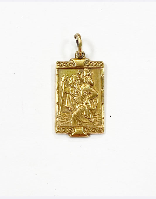 9ct 375 vintage gold rectangular St christopher pendant / charm circa 1968 4.3g