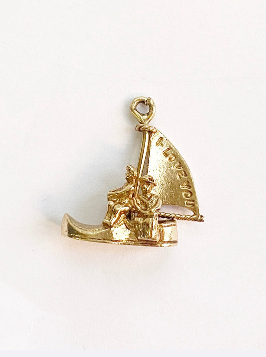 9ct shoe boat charm, vintage gold love boat 'I love you"