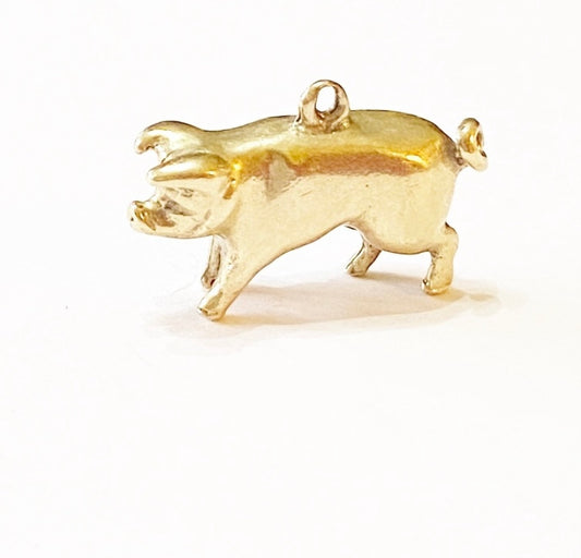 9ct vintage pig charm solid gold 8.7g circa 1970