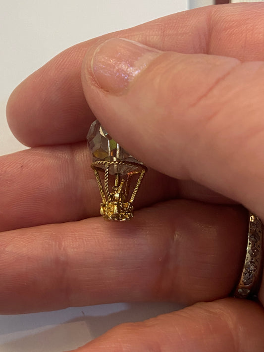 9ct vintage hot air balloon charm, with a crystal.
