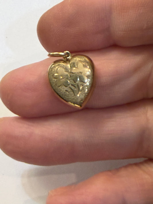 9ct vintage heart charm / pendant with pansy design. 'think of me' . hollow