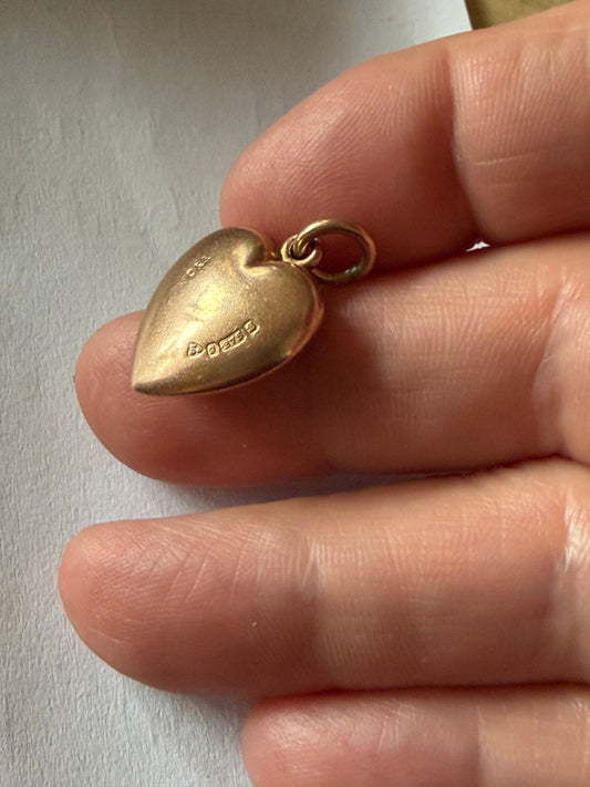 victorian 9ct antique puffy heart pendant charm, circa 1899 chester. Hollow