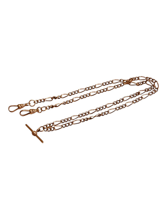 9ct vintage rose gold Albert chain. fancy link figaro. 15.8g