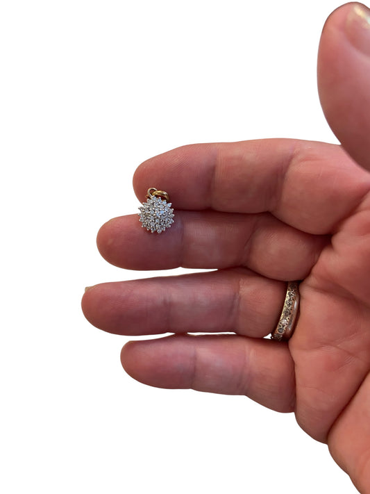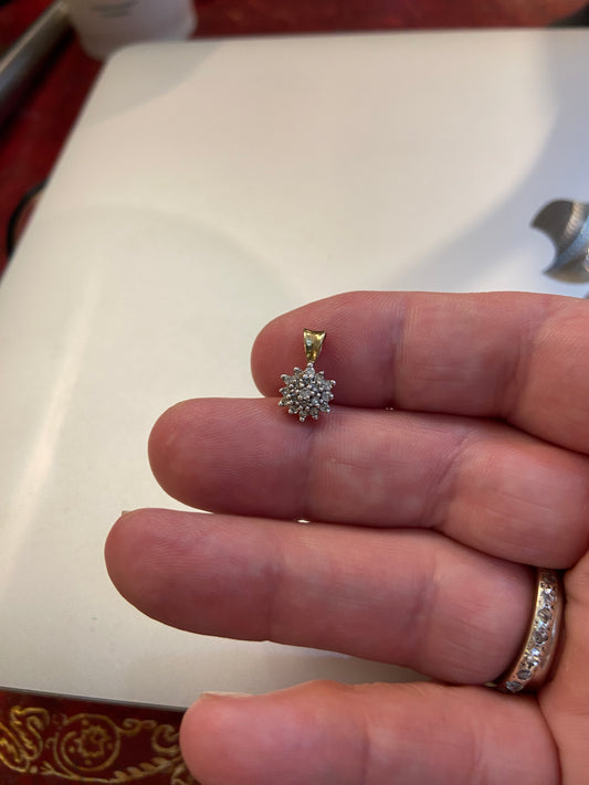 9ct vintage small diamond clustre. 0.8 g Edinburgh hallmark