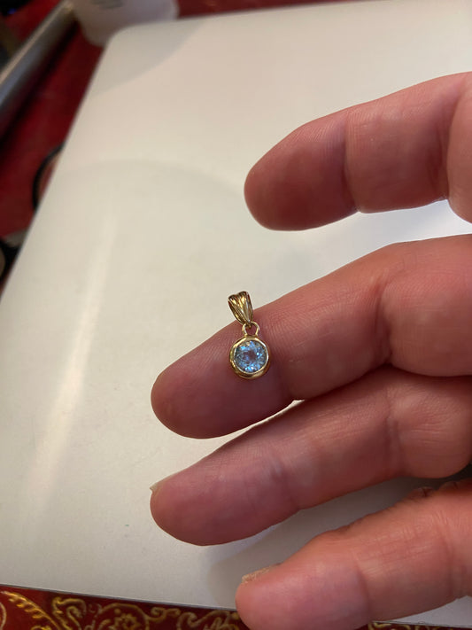 9ct vintage / pre owned blue topaz solitaire charm / pendant