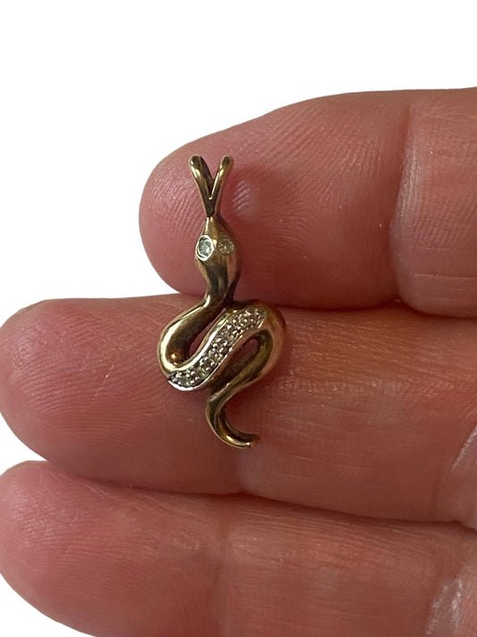9ct vintage / pre owned snake pendant - charm with diamond body and eyes.