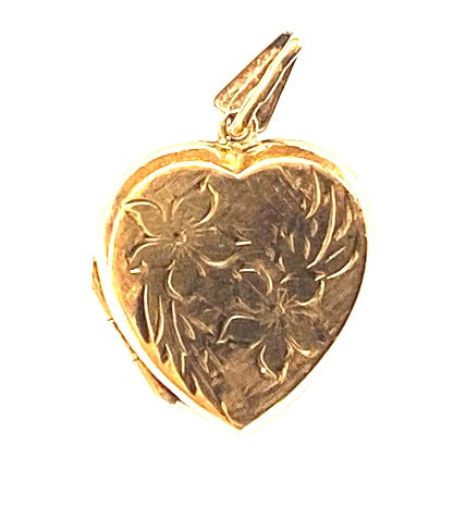 9ct vintage heart locket with pansies , 'pense a moi' think of me circa 1970