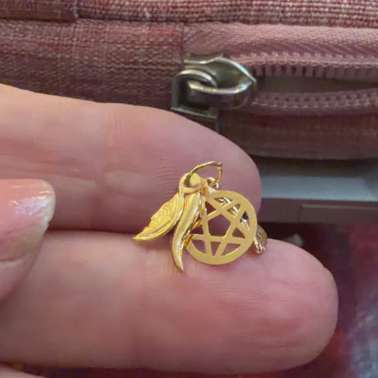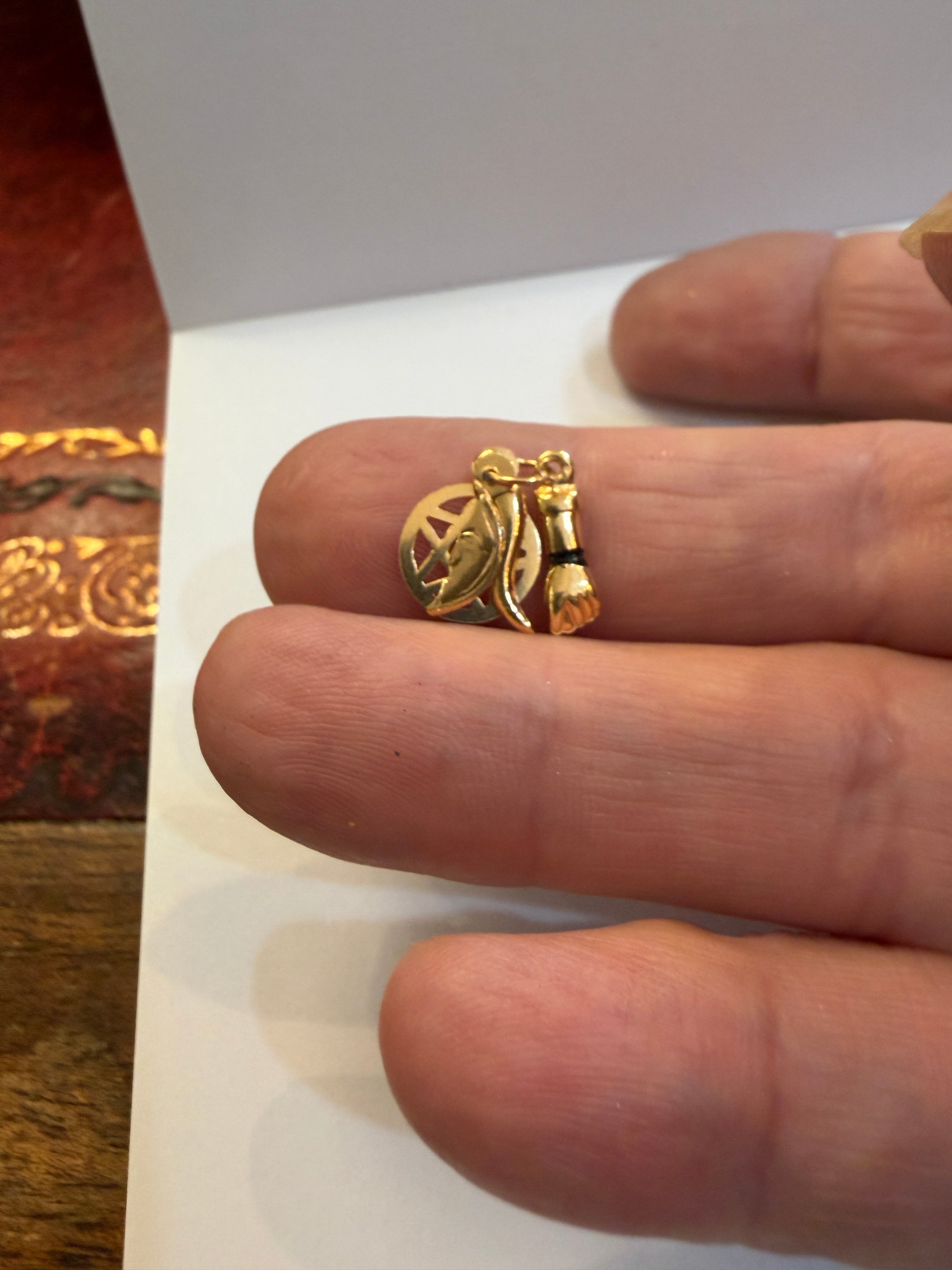 19ct figa hand, horn of plenty, moon face and pentagram charm