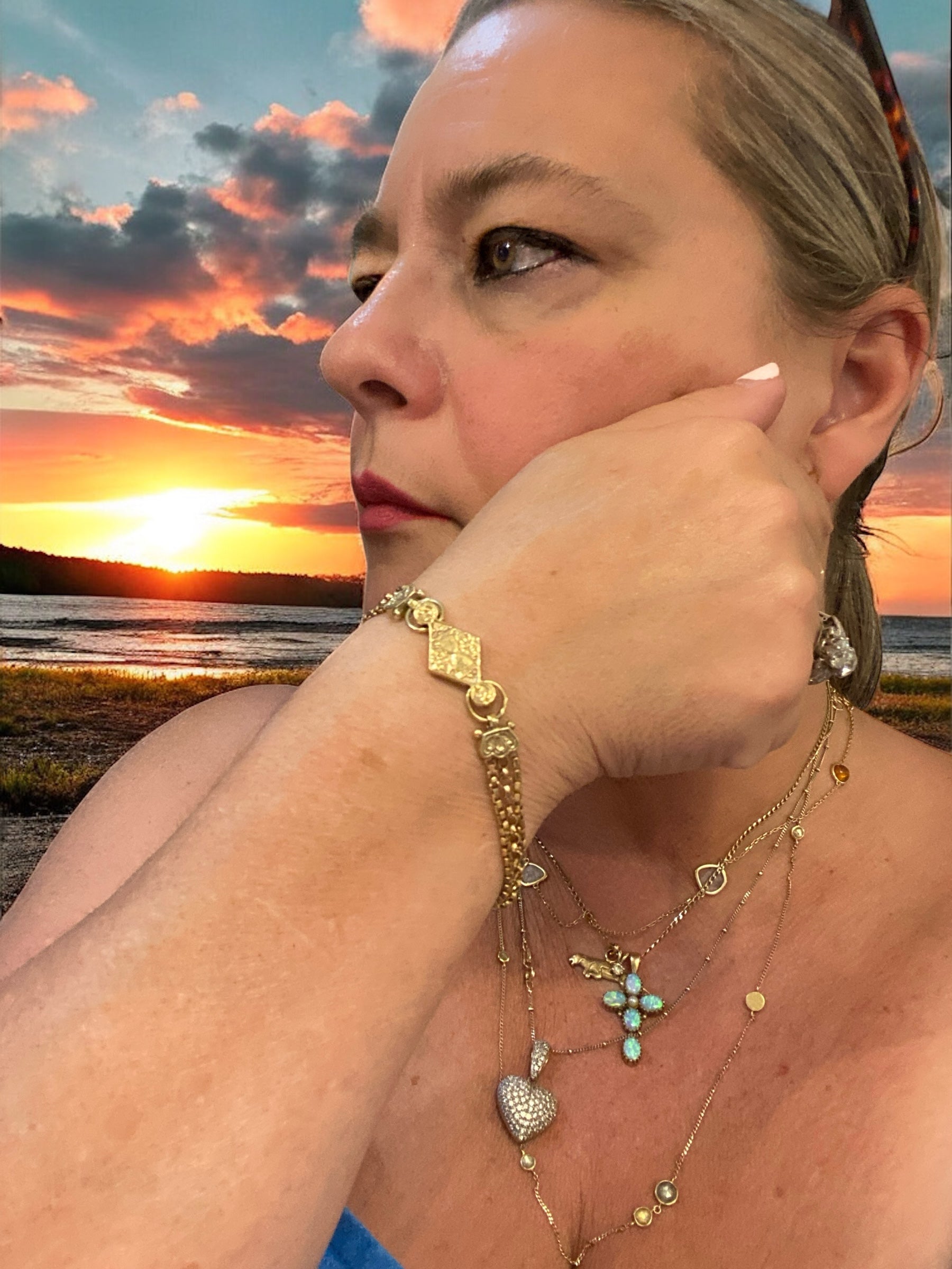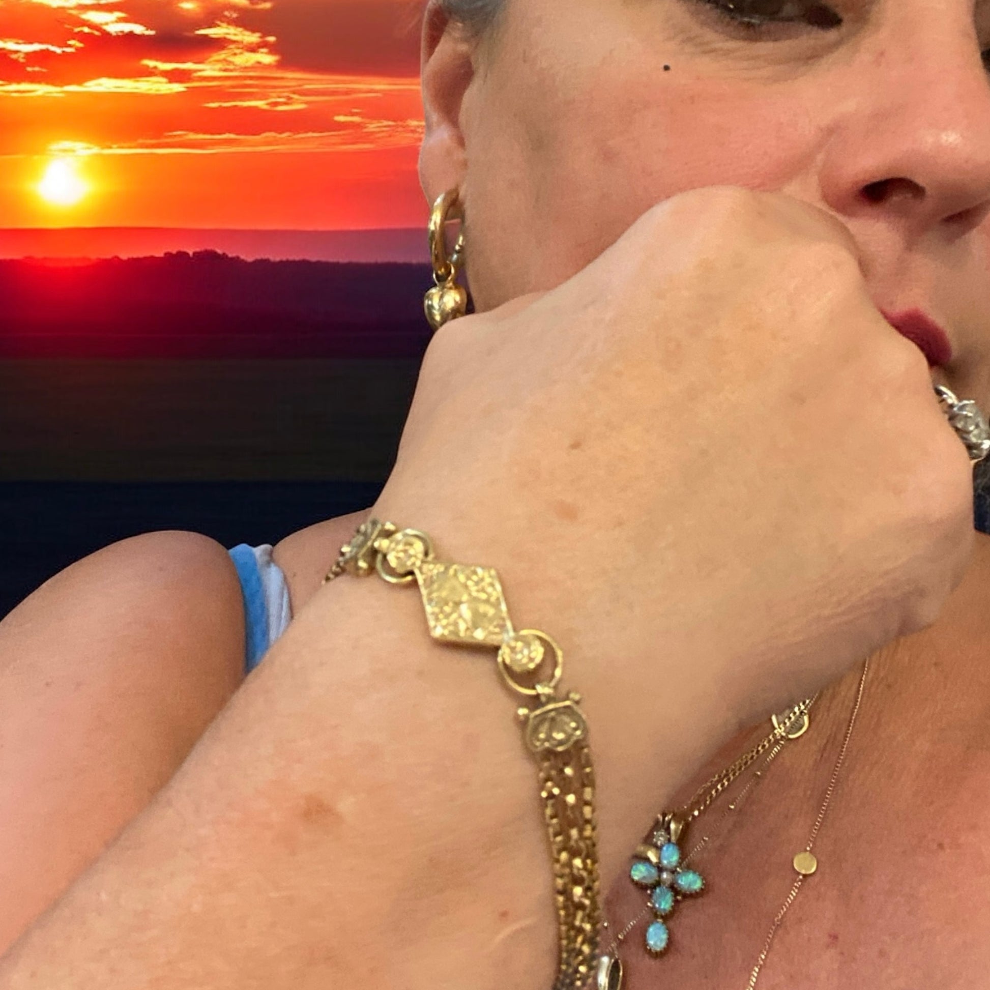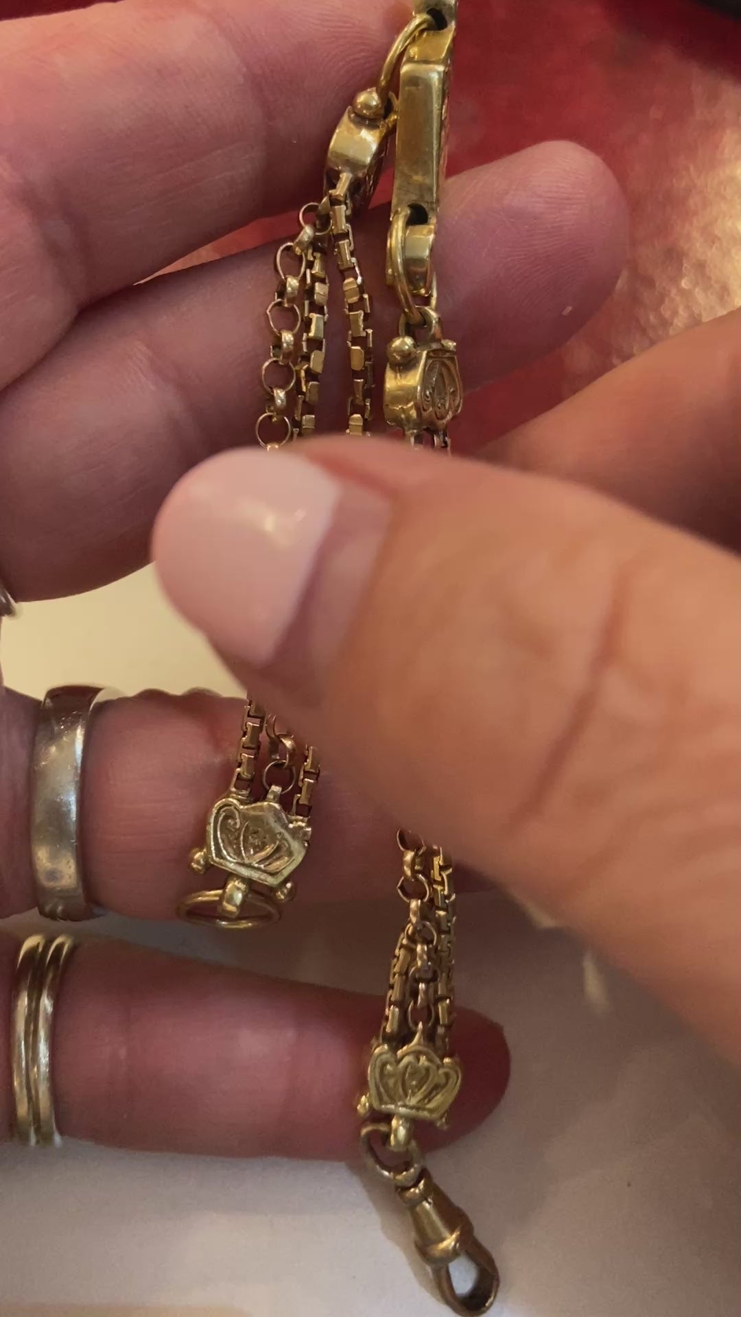 This is a very attractive Albertina bracelet, very ornate and mixed link with a dog clip clasp.