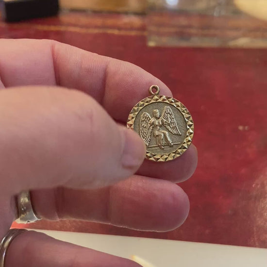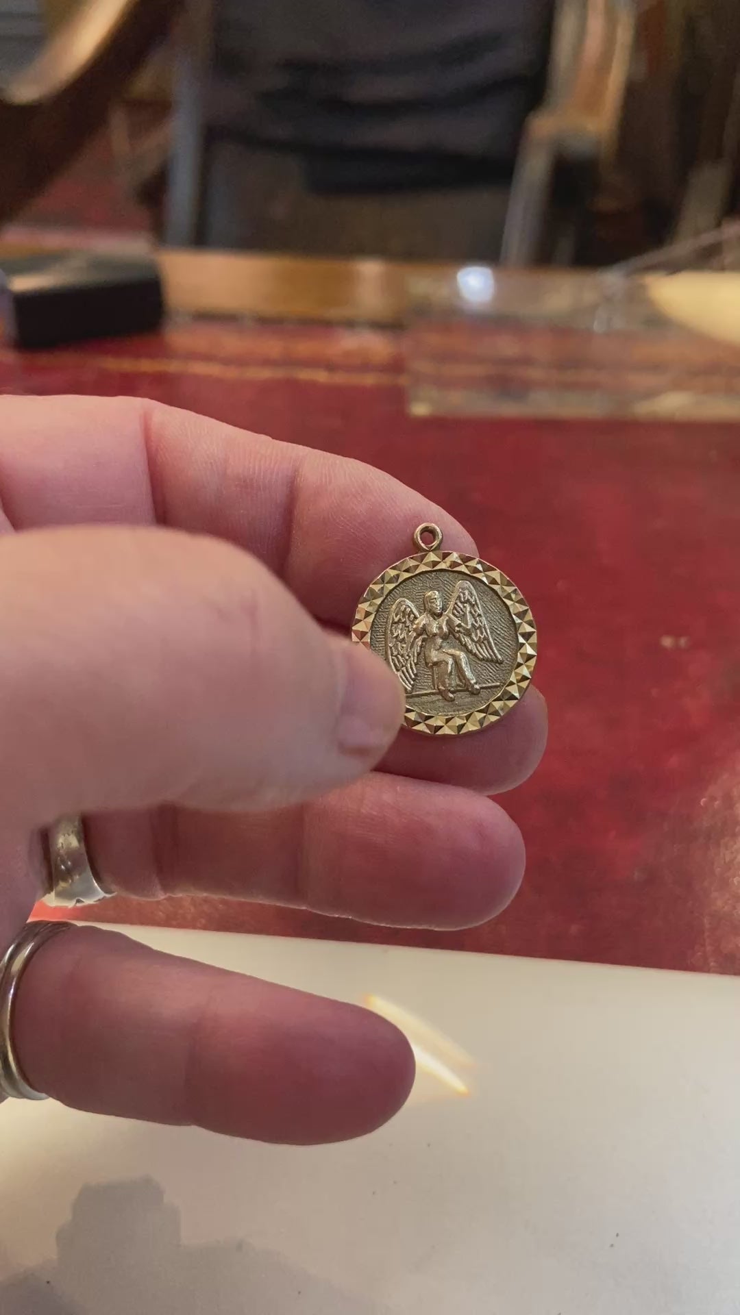 9ct 375 vintage gold guardian angel charm pendant with a mat central section