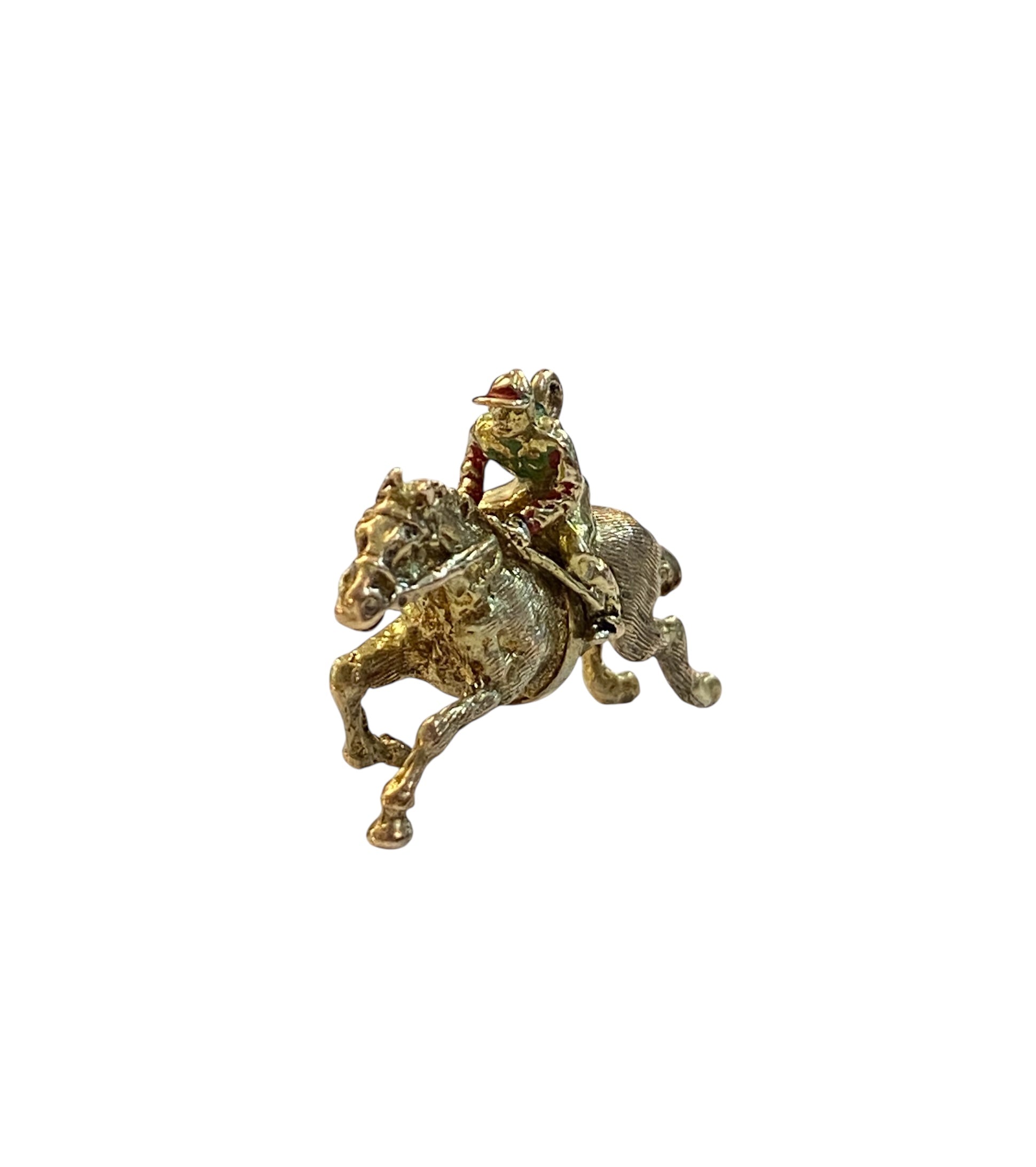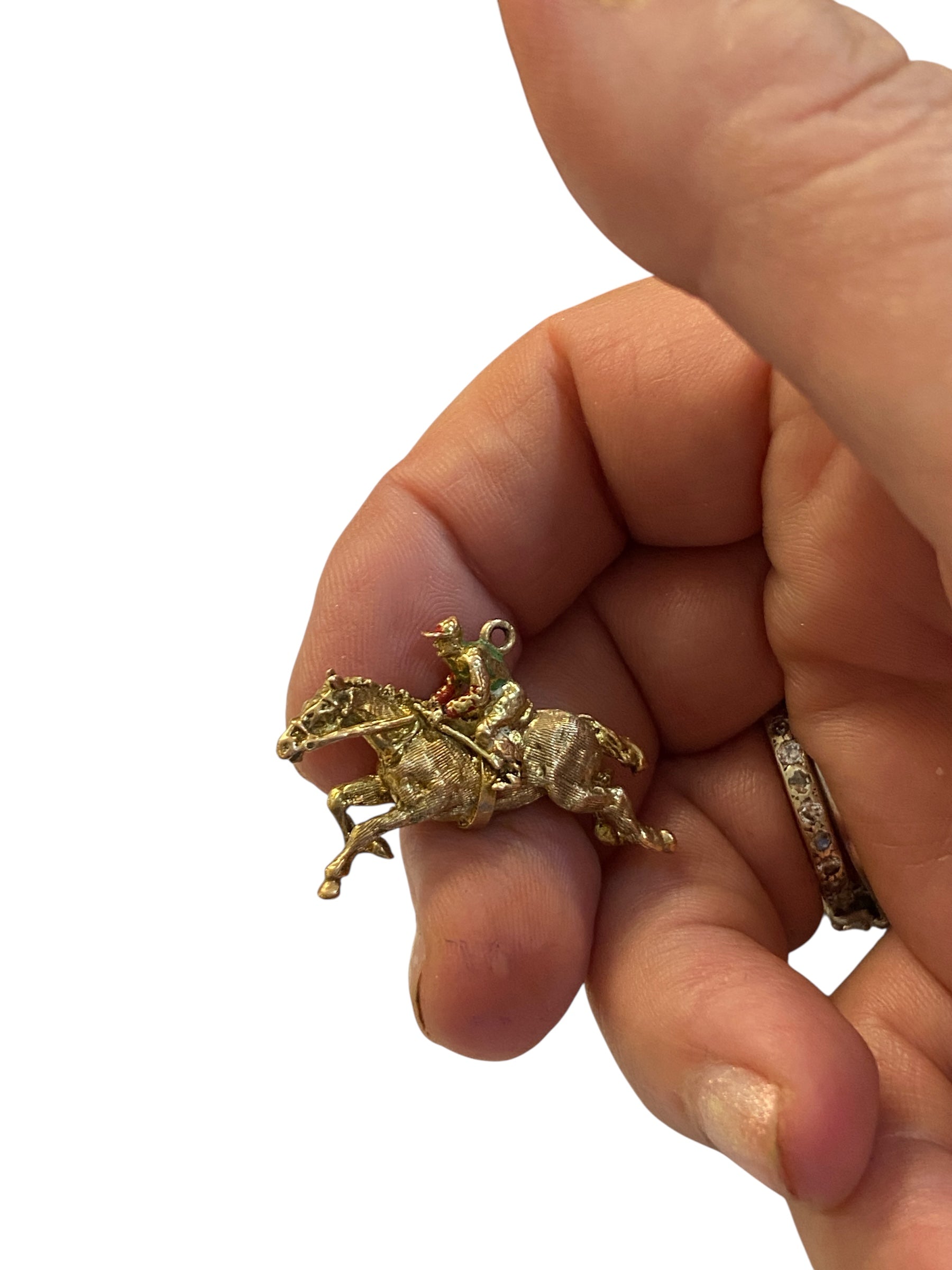 9ct 375 vintage gold jockey and horse charm, nice and large with slight enamelling,