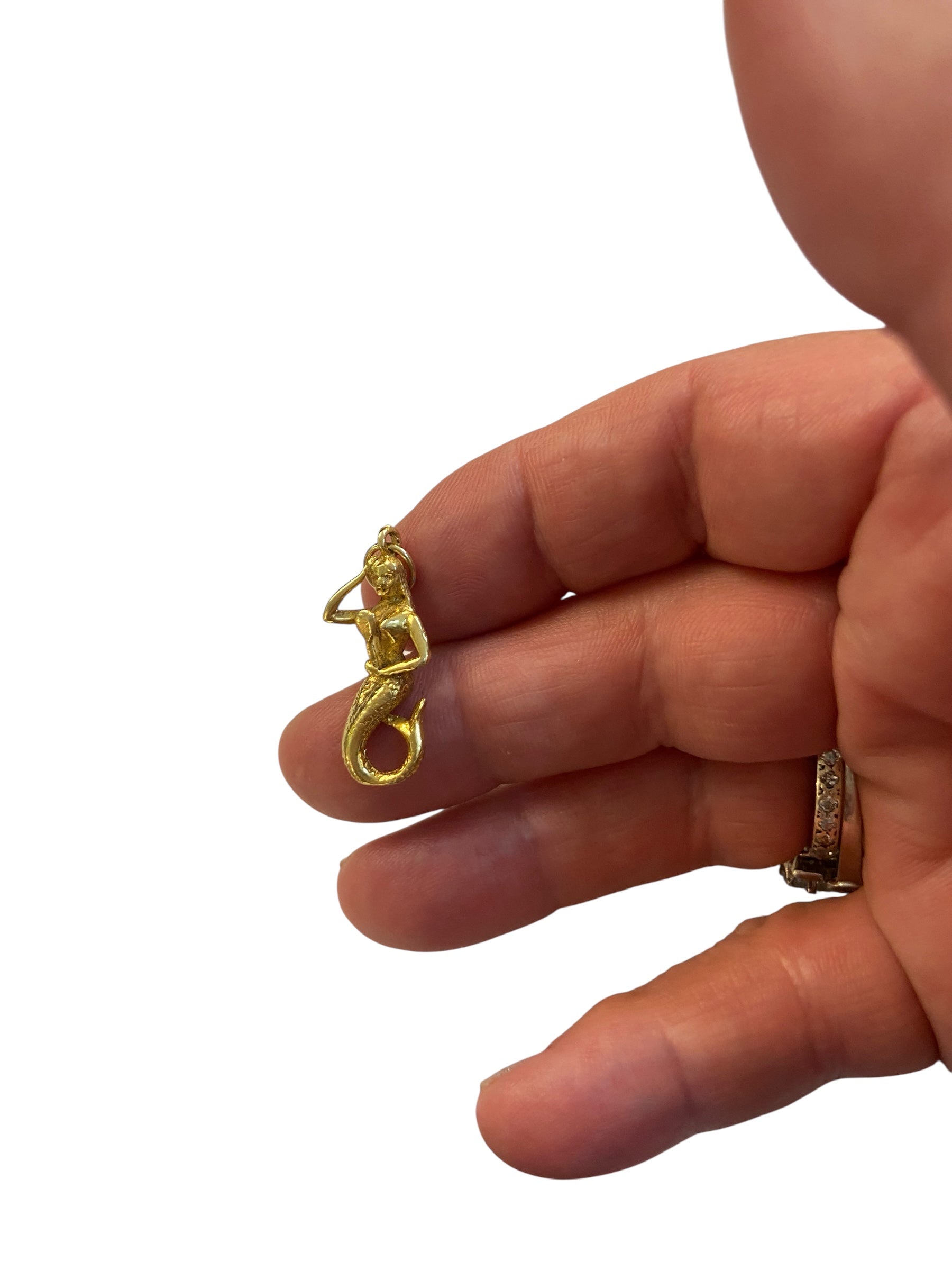 9ct 375 lovely mermaid charm looking at herself in the mirror,