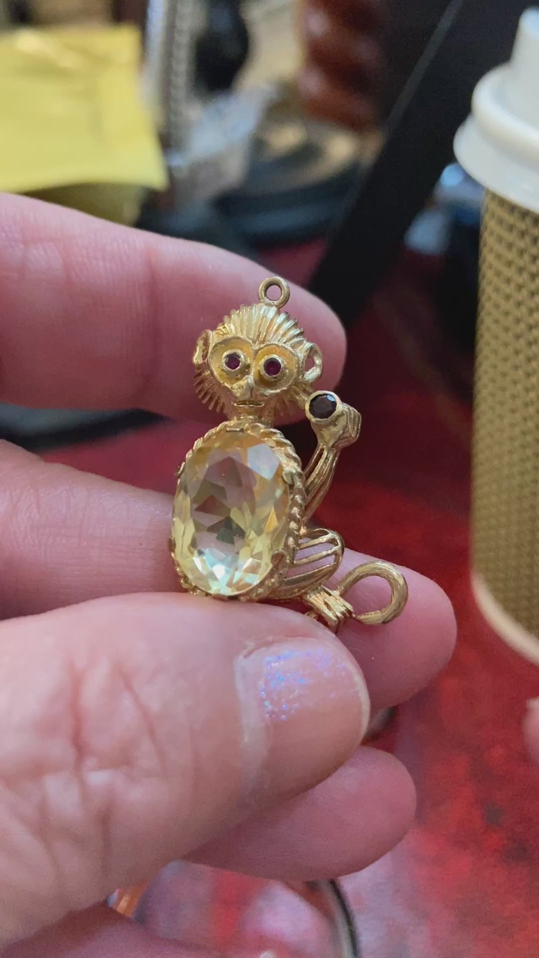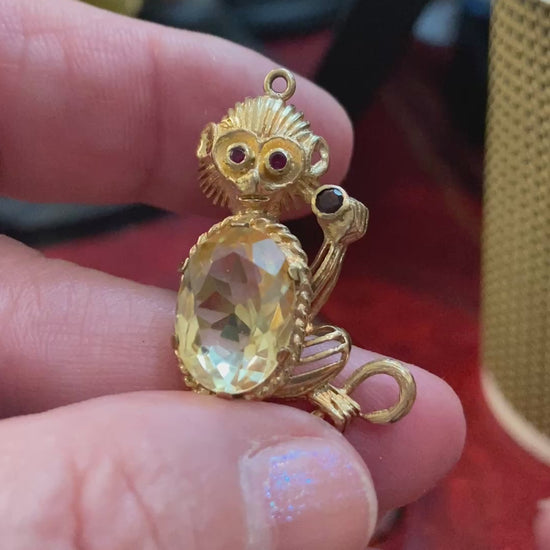 9ct vintage monkey pendant/ charm circa 1961 London with citrine tummy