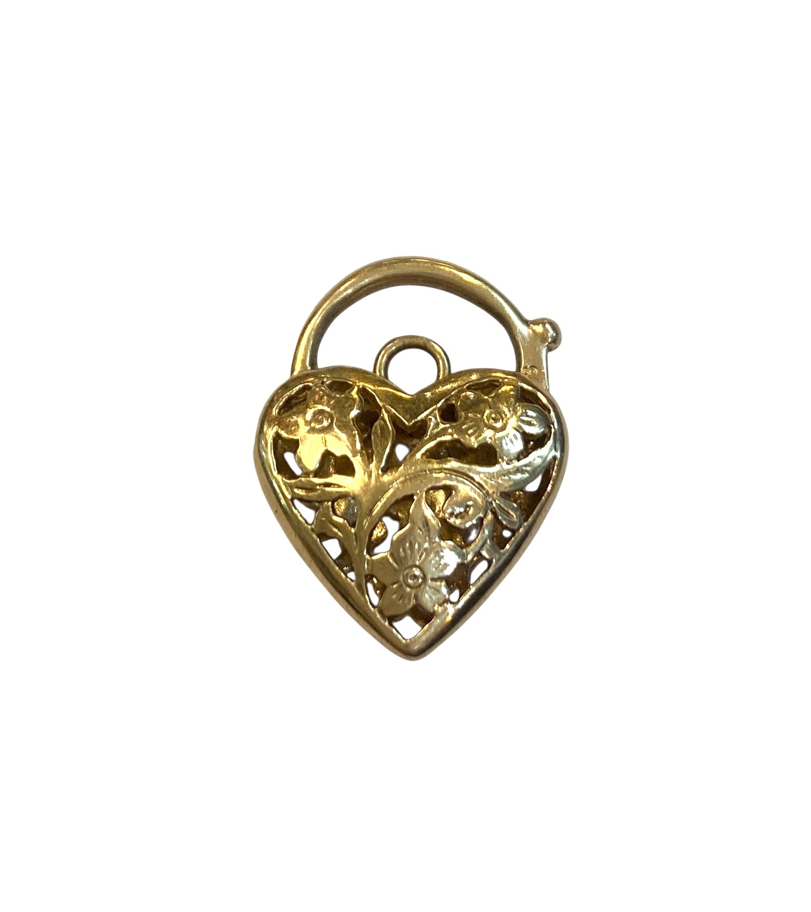 9ct vintage open work padlock charm / pendant 5.0g