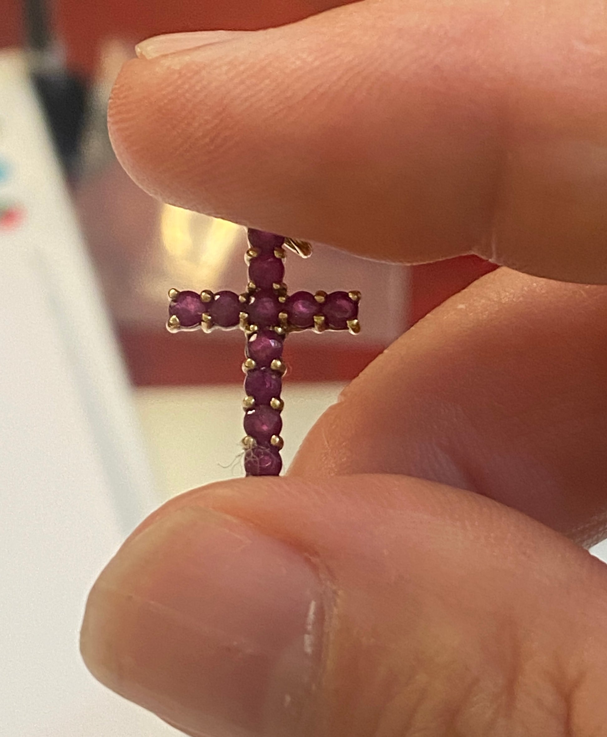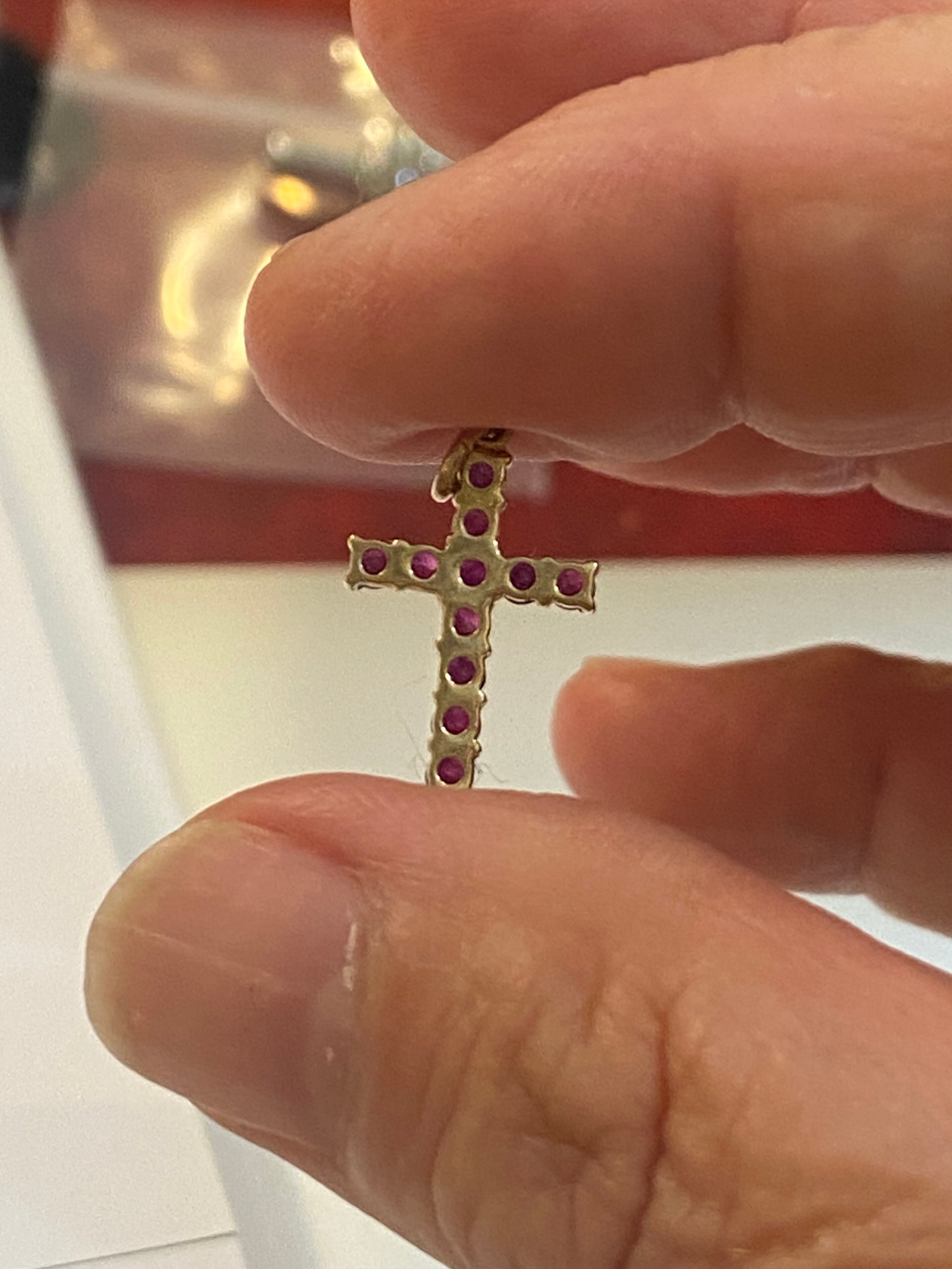 9ct vintage ruby cross, small 0.7g