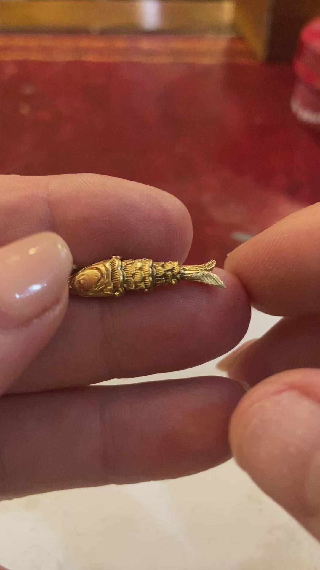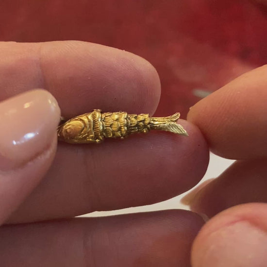 9ct vintage small articulated fish charm by FM