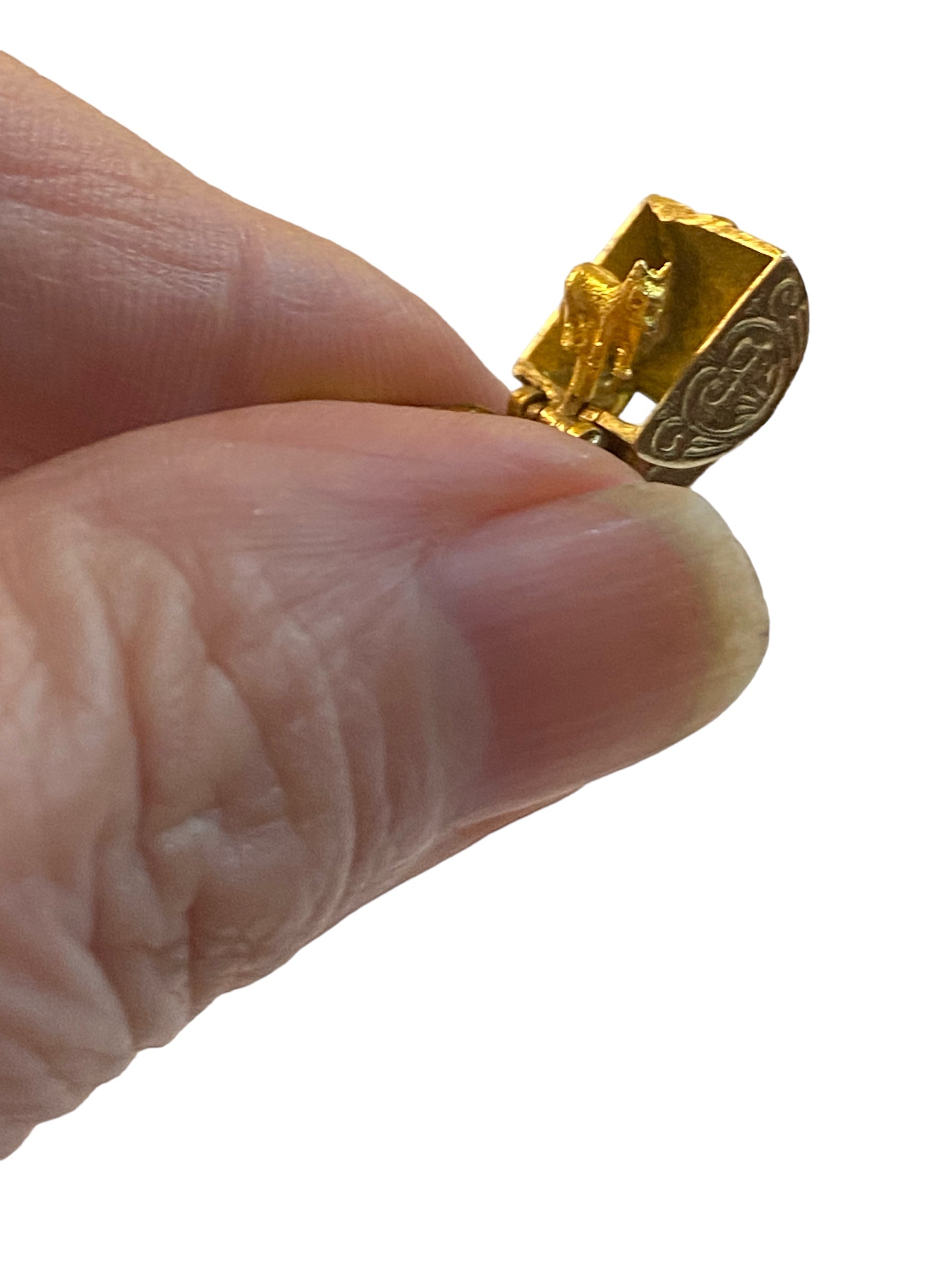 Gorgeous 9ct 375 vintage gold 'Wolf Whistle' opening to reveal a wolf inside,